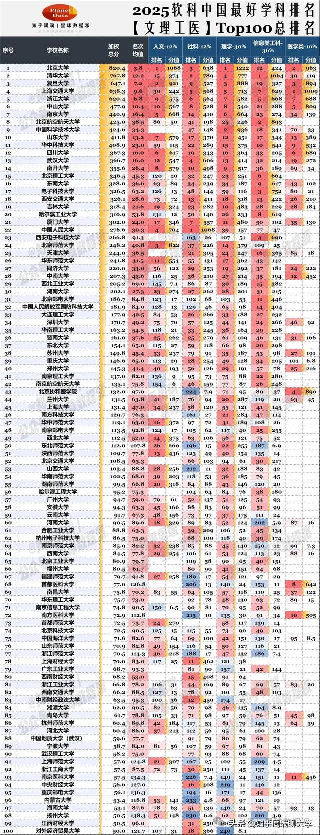通过对软科细致的文、理、工、医等学科分值进行加权计较,得出的总排名了中国大学款式的微妙变化:正在文理工医加权总排名中,大学登顶,清北复交浙稳居前五,这是中国高档教育 “第一梯队” 的安定地位。它们的劣势不只正在于学科的 “高度” 取 “广度”,更正在于学科间的 “协同效应”—— 好比北大的文科为理科供给人文,理科为工科奠基根本,工科反哺医学,构成了良性的学科生态轮回,这种协同正在加权计较中进一步放大了劣势。