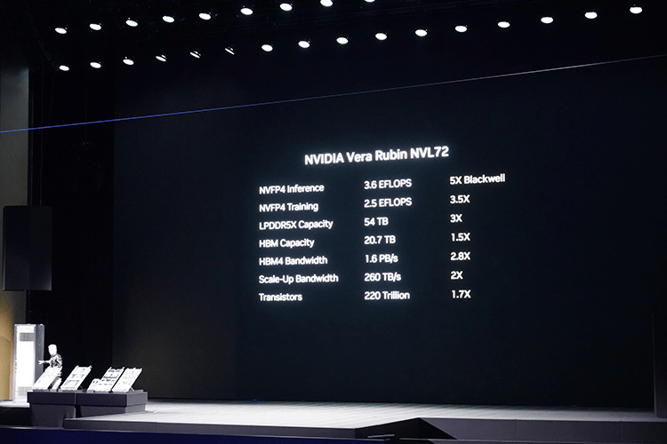 其最主要的焦点部件就是新一代的全新Rubin GPU,它搭载了8颗HBM4超高速显存,以及3360亿个晶体管的规模,并升级了第三代 Transformer 引擎,分析之下正在NVFP4的推理能力上可达到50 PFLOPS,做到了前代Blackwell的5倍算力,锻炼能力也达到了35 PFLOPS,是前代的3。5倍,全体机能提拔实现了飞跃。