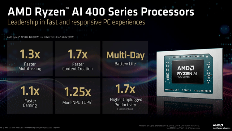 针对消费级市场,AMD继续深耕AI PC,将会推出全新的锐龙AI 400系列处置器,做为正在Zen 5架构的优化版,其频次最高提拔到5。2GHz,XDNA 2 NPU的AI算力提拔到60TOPS,GPU的频次最高提拔到3。1GHz,还能够原生支撑8533MT/s的内存,能够说这几项参数进化都是精准踩中AI推理的痛点。